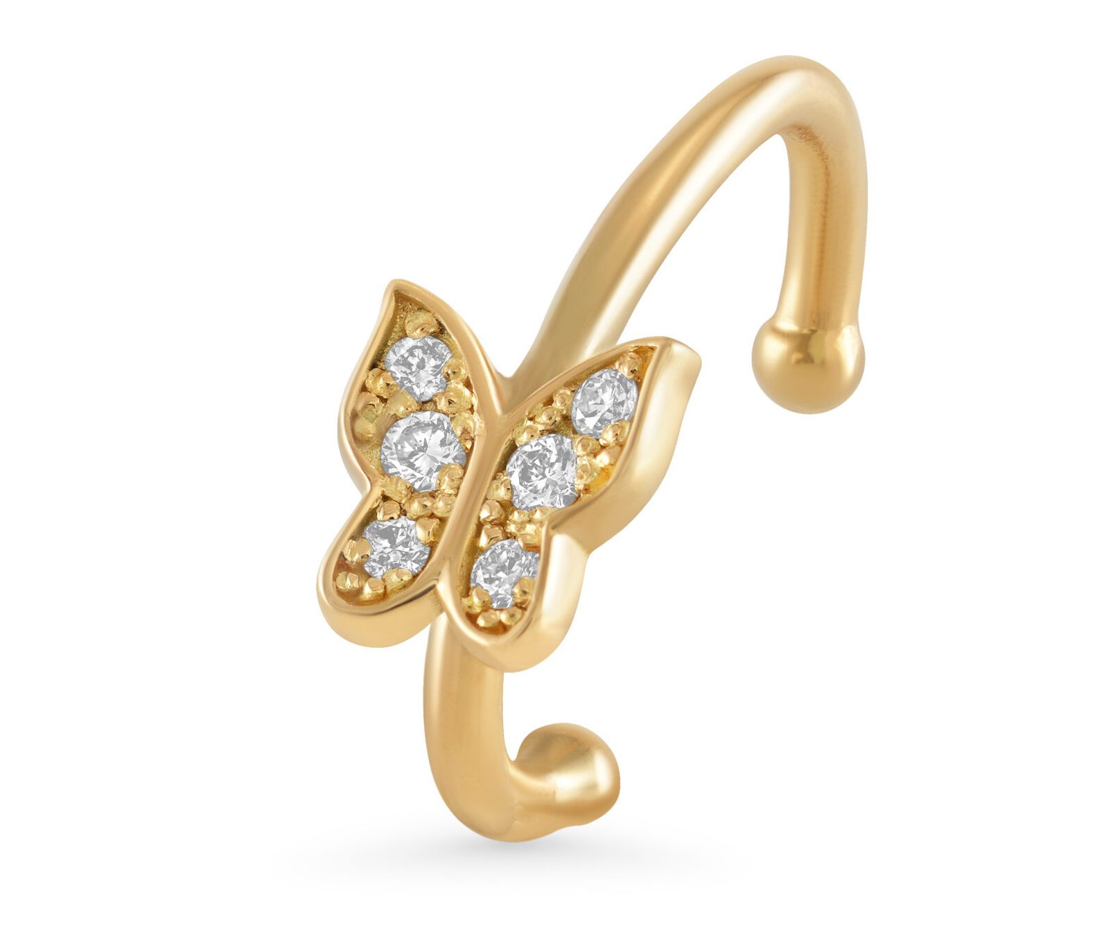 A butterfly ear cuff earring shouldn't feel out of shape from the natural lines of your ear. This entire collection is shaped for relaxation; therefore, the cuff has a sculptured, elevated angle that will look sophisticated no matter which way the profile is approached. The fit is purposeful yet relaxed - it also allows you to move freely.