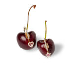 Made with 18k yellow gold, these earrings feature a heart design outlined in white enamel, set with 18k diamonds, red rubies, and pink sapphires.