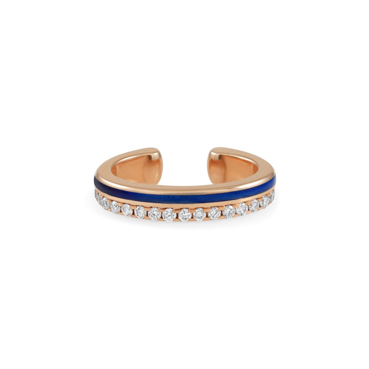 Made in 18k rose gold, this ear cuff features a row of blue enamel on top and a row of 18k diamonds on the bottom, creating a beautiful contrast of color and sparkle.